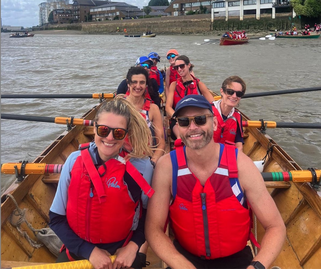 Our team of eight gathered bright and early at Poplar, Blackwall & District Rowing Club, with panoramic river views stretching across to the National Maritime Museum, the Cutty Sark, and the Greenwich Foot Tunnel. Perhaps a little too early… but it gave us the perfect opportunity to eye up the competition – and their flamboyant fancy dress!